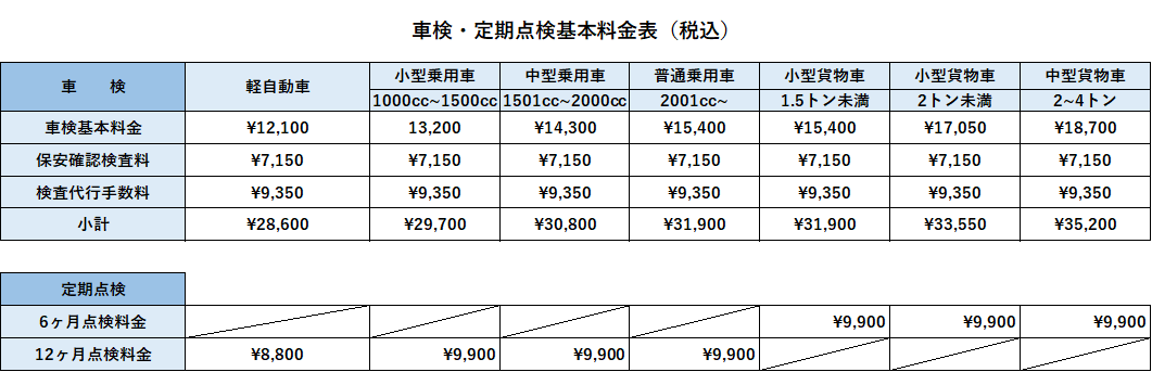 諸費用(車検時)、交換部品がある場合は別途料金がかかります。